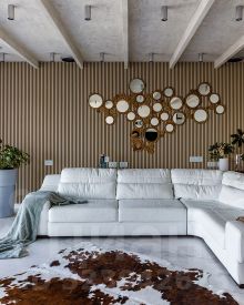 Атмосфера: просторные, светлые комнаты с панорамными окнами, декор с акцентами на натуральные материалы, зелень и современные текстуры. Гармония уюта и современного стиля.