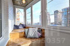 Есть встроенная гардеробная с датчиками движения, на балконе сделана зона хранения и зона для отдыха.