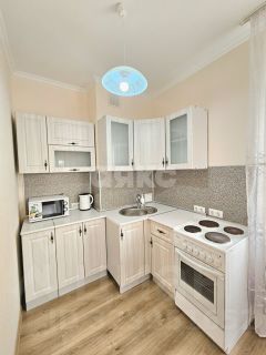 В квартире остается кухонный гарнитур, электрическая плита с духовкой, обеденный стол и 4 стула, холодильник двухкамерный с морозилкой, микроволновая печь, сплит-система, два дивана-кровати, телевизор, стиральная машина, утюг, фен, чайник, посуда и прочие необходимые бытовые вещи. В прихожей большой и вместительный шкаф-купе с зеркалом и комод для одежды и обуви. На полу ламинат.