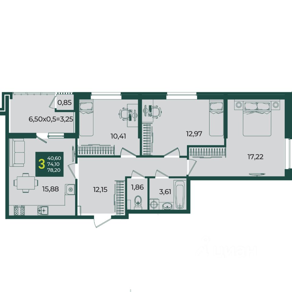 Состоит из 18 жилых домов разной этажности и форматов, в окружении объектов социальной инфраструктуры, включая муниципальную поликлинику.