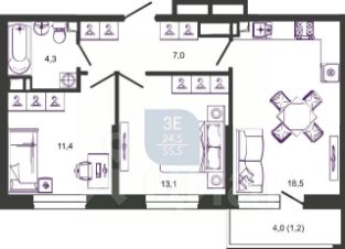 В квартире большая светлая кухня-гостиная 18,5 м². Высокий этаж с отличными видовыми характеристиками из любой комнаты.