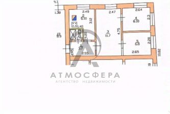 -Две жилые изолированные комнаты площадями 6,1 и 6 кв м, одна проходная 11,7 кв м, кухня 6,1 кв м, совмещенный санузел