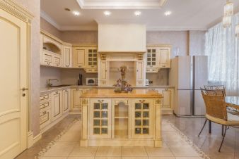 Пентхаус 250 м² в центре города с роскошной террасой, камином, 2 гардеробными, большой кухней, кладовой, постирочной и гладильной комнатой.