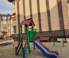 Облагороженный двор: зоны отдыха, современная детская площадка.
