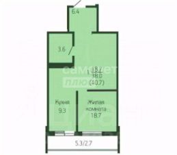 — Общая площадь квартиры 40.7 м².