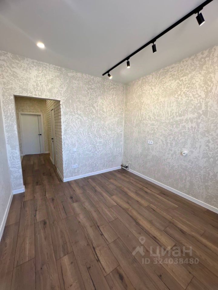 На стенах во всей квартире сделана декоративная штукатурка, пол-ламинат, санузел и входная группа (керамогранит). Сделаны натяжные потолки (на кухне трековое освещение).