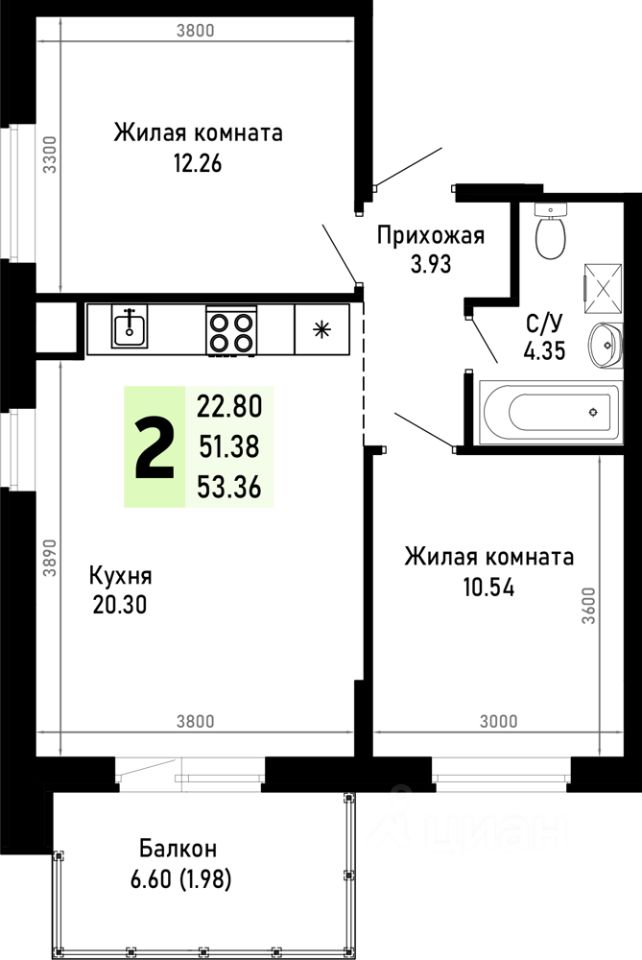 Продаётся 2-комнатная квартира в строящемся доме (квартал 9.2 литер 3), срок сдачи: IV-кв. 2026, общей площадью 53.36 кв.м., на 3 этаже. Новый жилой комплекс по ул. Николая Лебедева от застройщика "ССК"