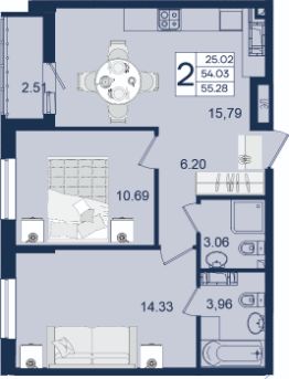 2 комнатная квартира с ремонтом 55.28 м², на 7 этаже в жилом комплексе "Дом 101".