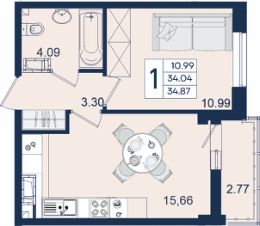 1 комнатная квартира с ремонтом 34.87 м², на 8 этаже в жилом комплексе "Дом 101".