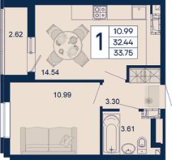 1 комнатная квартира с ремонтом 33.75 м², на 8 этаже в жилом комплексе "Дом 101".