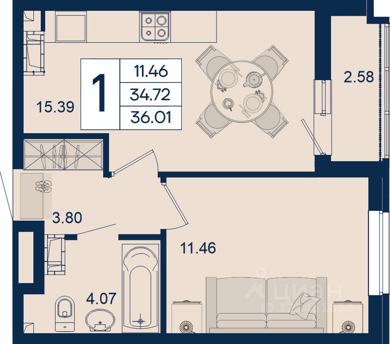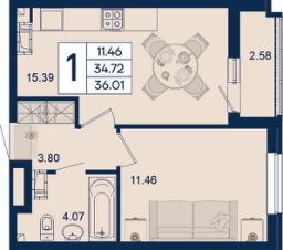 1 комнатная квартира с ремонтом 36.01 м², на 12 этаже в жилом комплексе "Дом 101".