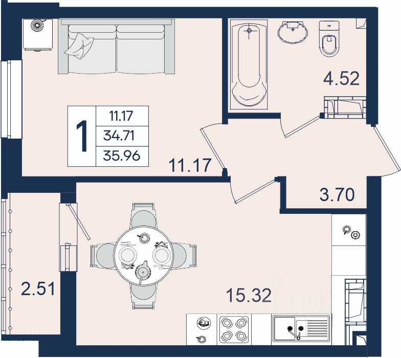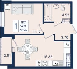 1 комнатная квартира с ремонтом 35.96 м², на 8 этаже в жилом комплексе "Дом 101".