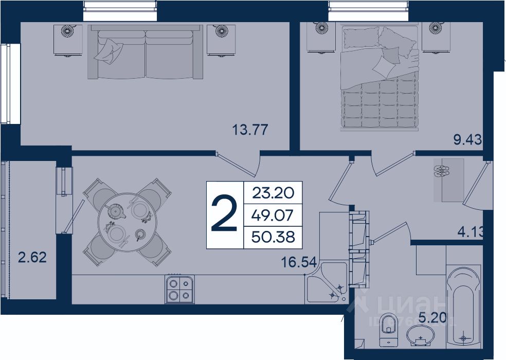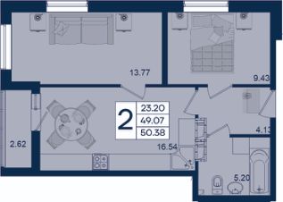 2 комнатная квартира с ремонтом 50.38 м², на 14 этаже в жилом комплексе "Дом 101".