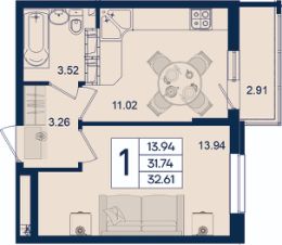 1 комнатная квартира с ремонтом 32.61 м², на 18 этаже в жилом комплексе "Дом 101".