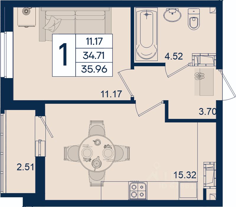 1 комнатная квартира с ремонтом 35.96 м², на 18 этаже в жилом комплексе "Дом 101".
