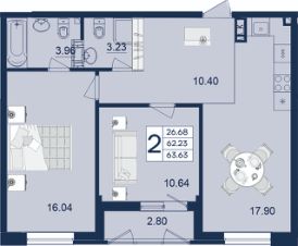 2 комнатная квартира с ремонтом 63.63 м², на 6 этаже в жилом комплексе "Дом 101".