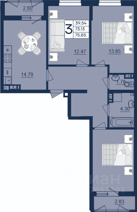 3 комнатная квартира с ремонтом 75.85 м², на 4 этаже в жилом комплексе "Дом 101".