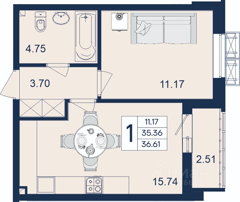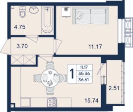 1 комнатная квартира с ремонтом 36.61 м², на 2 этаже в жилом комплексе "Дом 101".