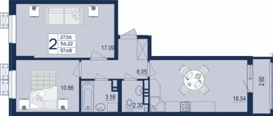 2 комнатная квартира с ремонтом 57.68 м², на 7 этаже в жилом комплексе "Дом 101".