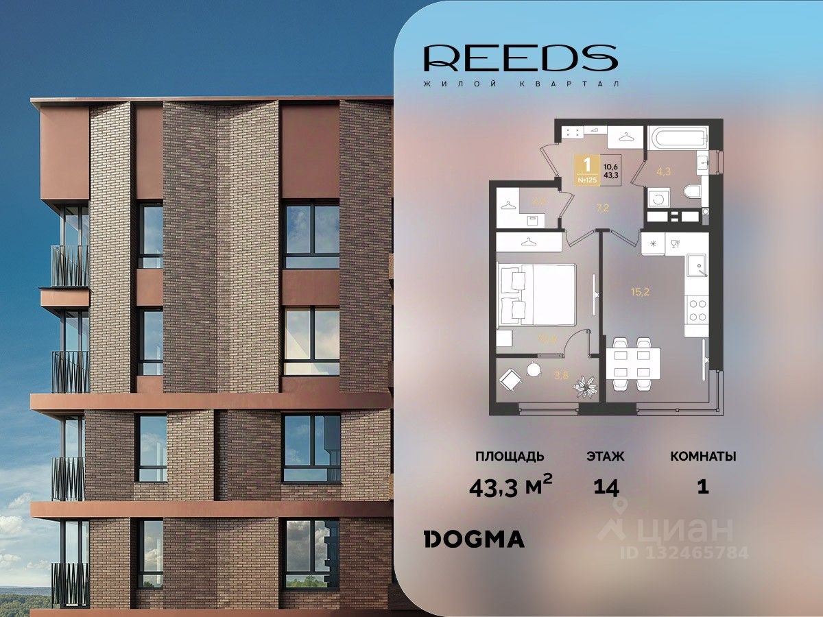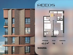 Срок сдачи: (4 кв. 2028, общей площадью 43.3 кв.м., на 14 этаже.)