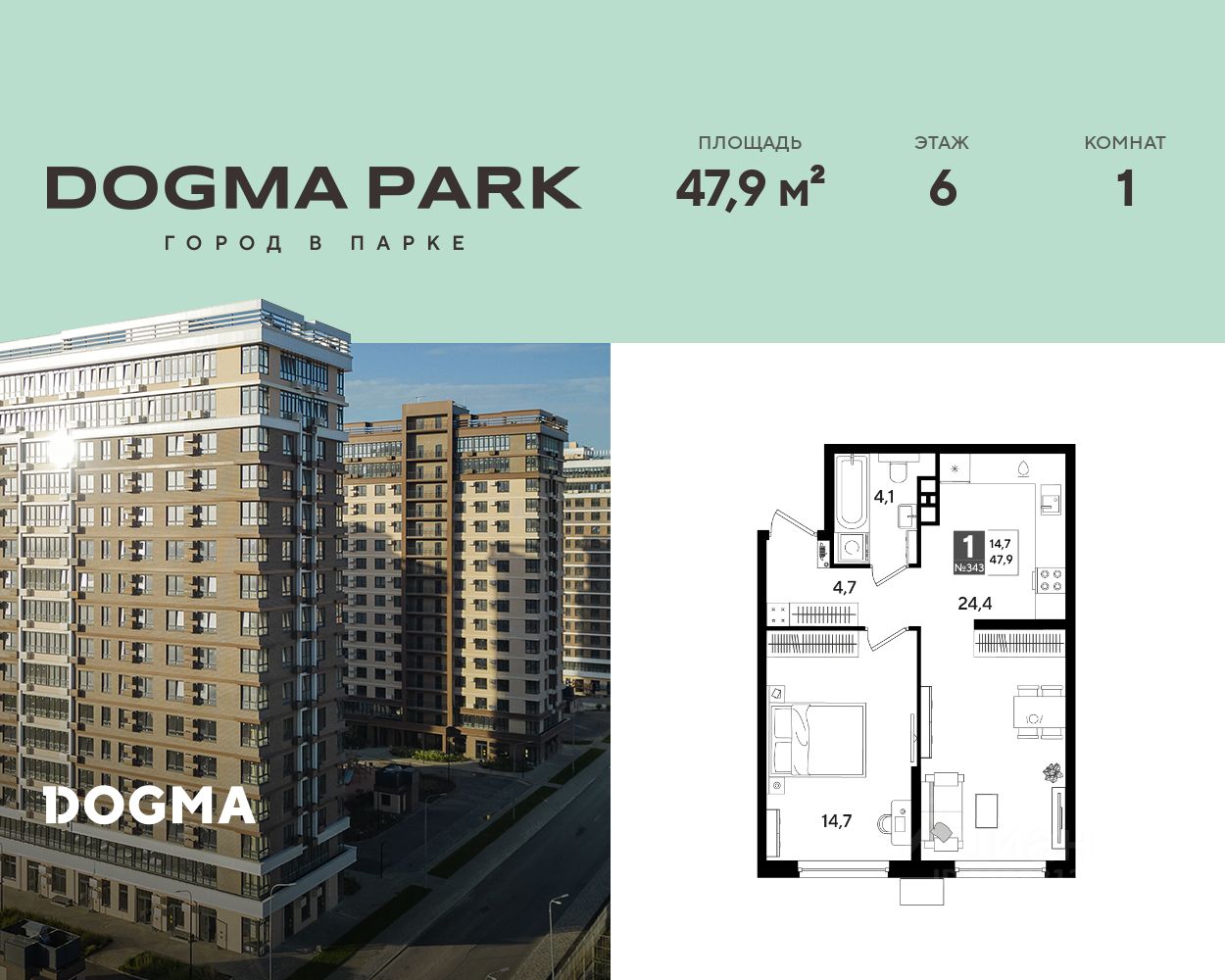 В продаже 1-комнатная квартира от застройщика! Мкр. "DOGMA PARK" г. Краснодар, Литер 13 Срок сдачи: 4 кв. 2027, общей площадью 47.9 кв.м., на 6 этаже.