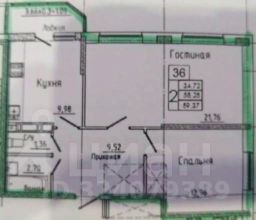 2 комнатная квартира (Евро-3), 58,4 кв.м, ЖК "Панорама", лит. 31, ул. Героя Сарабеева, 5, Прикубанский район | 8/18 эт. | монолит-кирпич