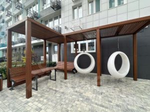Комплекс бизнес-класса, с собственной охраняемой закрытой территорией, снабженной видеонаблюдением, так-же для деток во дворе есть отличные детские площадки, детский садик, ближайшая школа находится в 10 минутах ходьбы от дома.