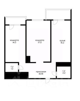 В продаже двухкомнатная квартира.