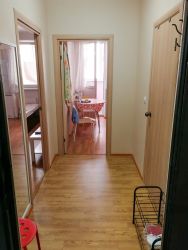 Квартира с косметическим ремонтом. В планировку уже внесены дополнительные розетки под вытяжку и приборы на фартуке кухни, под ТВ в комнате, установлен кондиционер. Установлен домофон и проведен интернет. Натяжные потолки. Встроенный шкаф купе с зеркалами - большое пространство для хранения верхней одежды, гладильной доски, постельного белья и чемоданов, а так же встроенный стол для работы за компьютером скрывается за зеркалом шкафа. Натяжные матовые потолки. Две лоджии застекленные, с плиткой на полу, утепленный пол. На лоджии на кухне подоконник, за которым удобно сидеть и пить кофе. Из окна виден дом и большая детская площадка. Рядом с подъездом 2 большие детские площадки и еще много более мелких. Множество магазинов, салонов. До остановки 7 минут пешком. До центра на автобусе 25 минут. Рядом гипермаркет Лента. Возможна продажа с мебелью и техникой, как на фото. Можно и без нее. Кровать 140 см ширина, подъемный механизм для хранения.