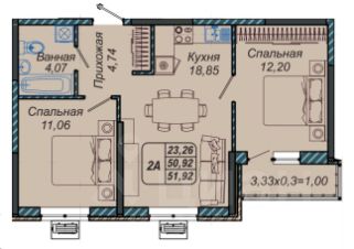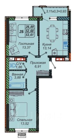 1 лоджия, 1 балкон
