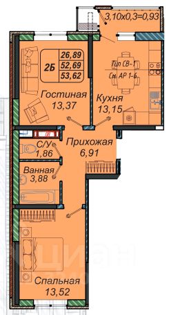 52 м²