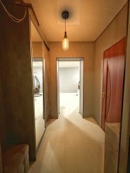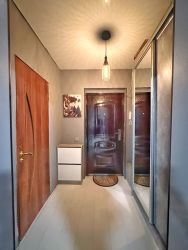 ПРО КОРИДОР: действительно просторный коридор, в котором расположился вместительный шкаф-купе. Так же в коридоре установлены обувная полка и пуф для дополнительного удобства при входе и выходе из квартиры.