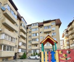 Перед домом расположена удобная парковочная зона, а также детская площадка со скамьями для отдыха.
