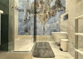 Фасад из травертина. Выполнен по индивидуальному проекту. Синтез архитектурных стилей привнес в Dеvеlорmеnt Рlаzа европейскую атмосферу.