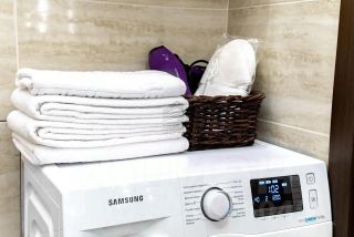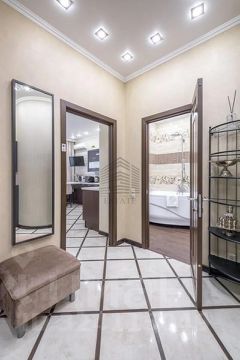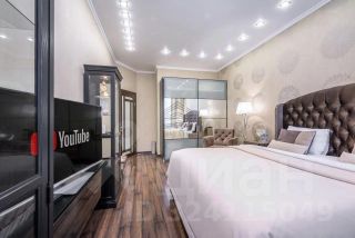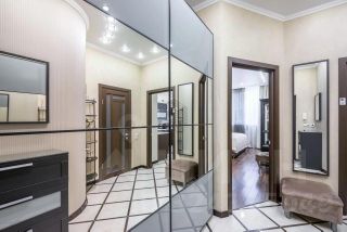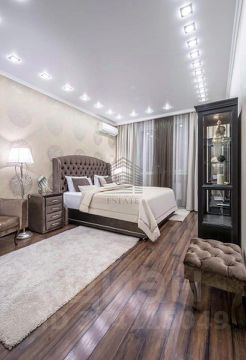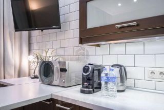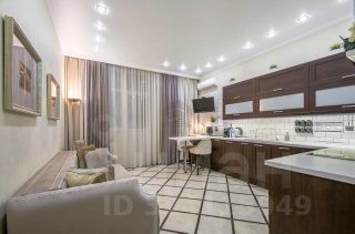 Общая площадь 50 м²: кухня-гостиная 17 м², отдельная просторная комната, совмещённый санузел, большая лоджия, высота потолков 3 м. Выполнен качественный дизайнерский ремонт с продуманным освещением и отделкой. На кухне установлен современный кухонный гарнитур со всей необходимой встроенной бытовой техникой, предусмотрена зона отдыха с диваном и креслом. В комнате — двуспальная кровать и шкаф. В коридоре — большой встроенный гардеробный шкаф, позволяющий грамотно организовать хранение.