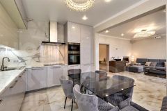 В самой квартире сделан современный, качественны ремонт с мебелью и техникой. Есть 2 изолированных спальни, просторный зал и кухня/ столовая, 2 санузла и постирочная с гардеробной, а также просторный балкон, с которого открывается вид на стадион OZON Арена и парк Краснодар.
