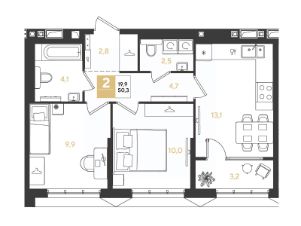 Срок сдачи: 3 кв. 2028, общей площадью 50.3 кв.м., на 18 этаже.