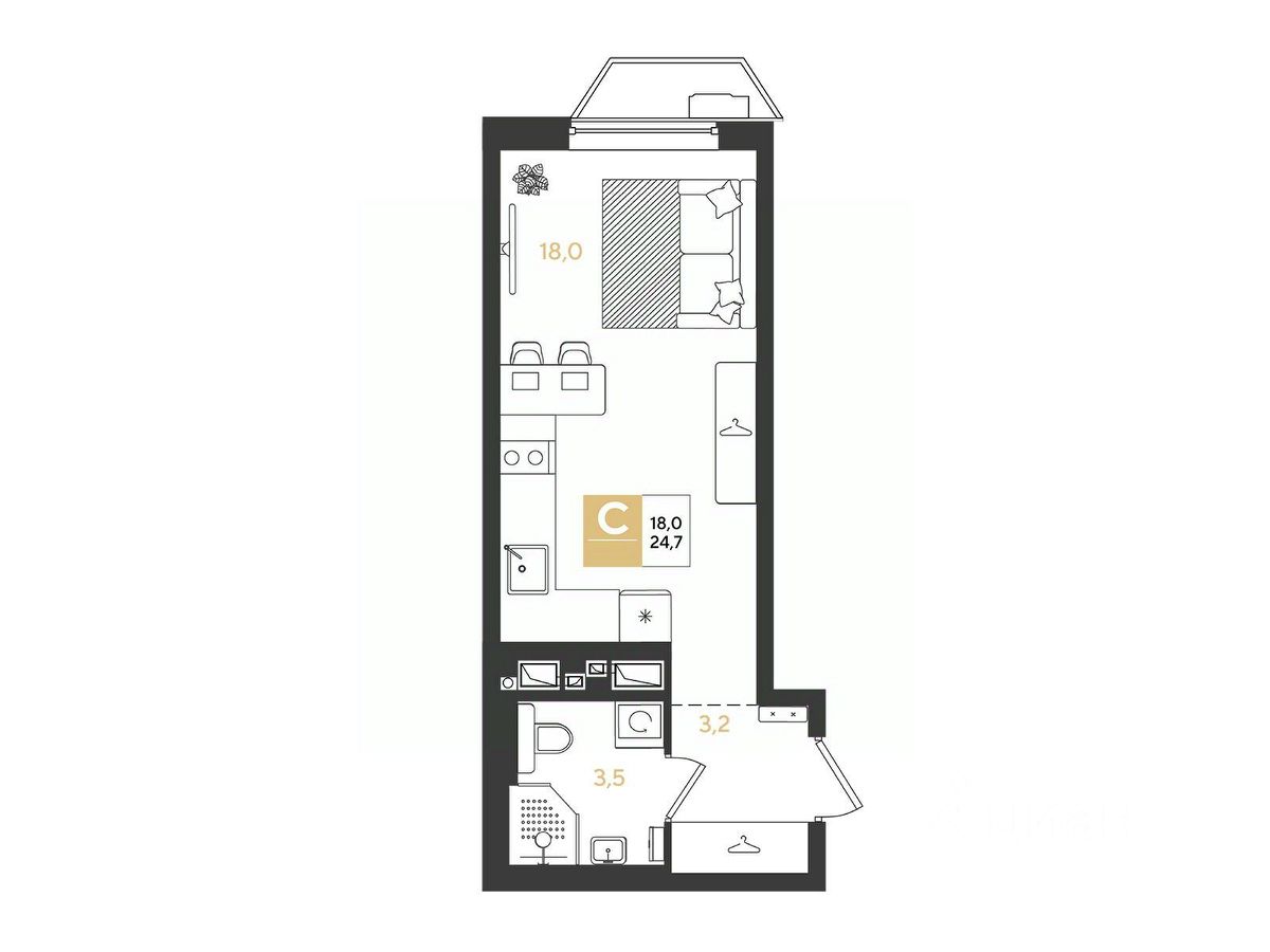 Срок сдачи: 3 кв. 2028, общей площадью 24.7 кв.м., на 5 этаже.