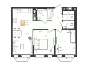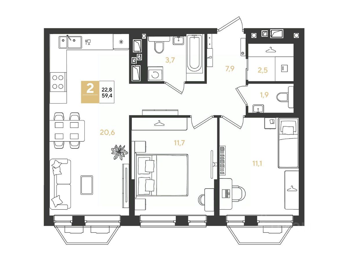 Срок сдачи: 3 кв. 2028, общей площадью 59.4 кв.м., на 7 этаже.