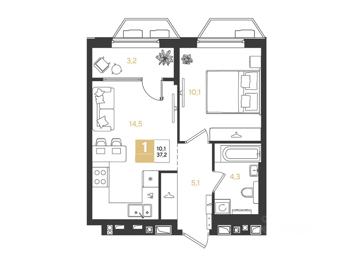 Срок сдачи: 3 кв. 2028, общей площадью 37.2 кв.м., на 6 этаже.