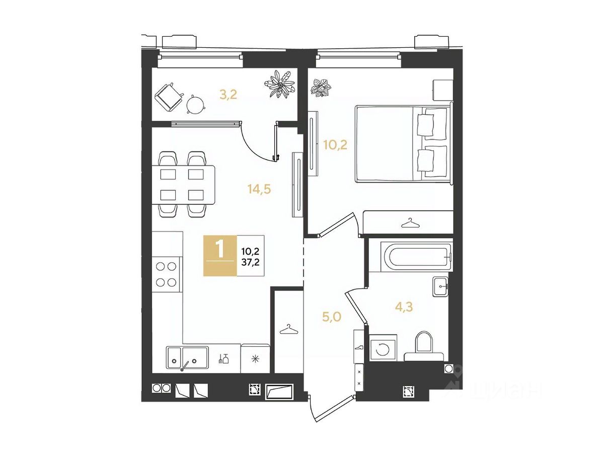Срок сдачи: 3 кв. 2028, общей площадью 37.2 кв.м., на 2 этаже.