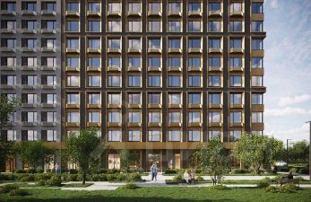 • Безупречно гладкие навесные вентилируемые фасады благородного оттенка латуни.