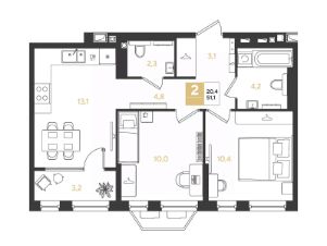 Срок сдачи: 3 кв. 2028, общей площадью 51.1 кв.м., на 3 этаже.
