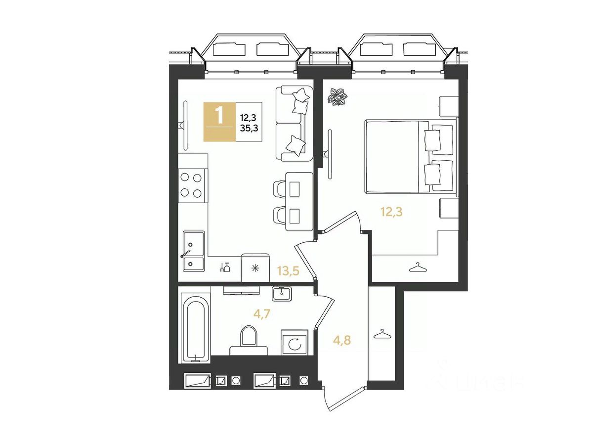 Срок сдачи: 3 кв. 2028, общей площадью 35.3 кв.м., на 6 этаже.