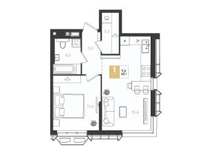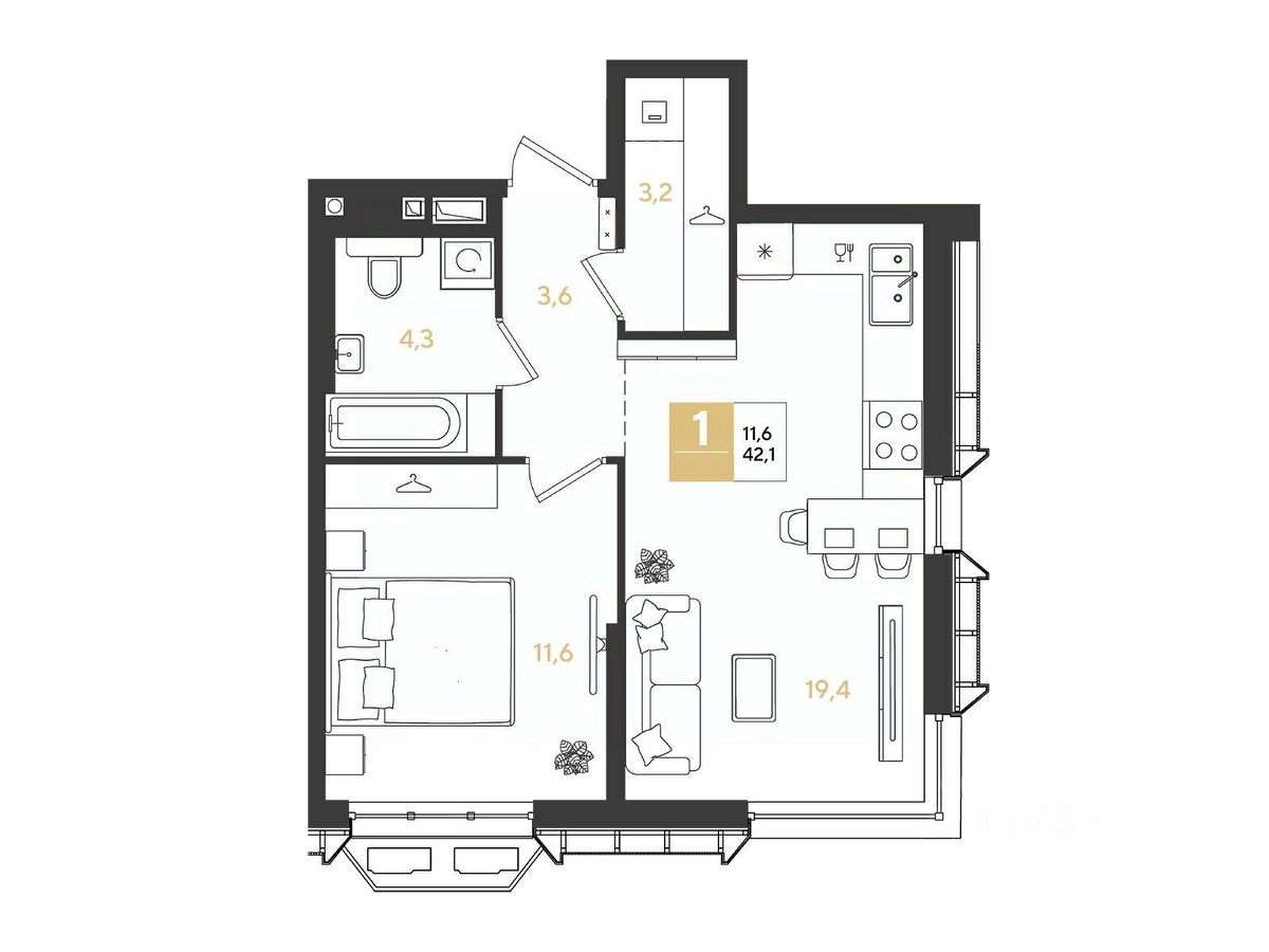 Срок сдачи: 3 кв. 2028, общей площадью 42.1 кв.м., на 9 этаже.
