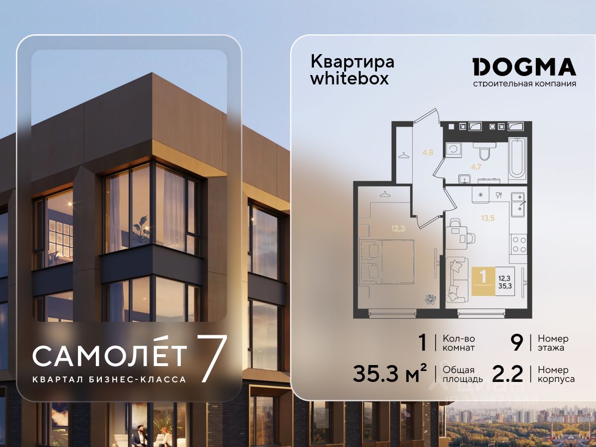 Продаётся 1-комнатная квартира от застройщика DOGMA.