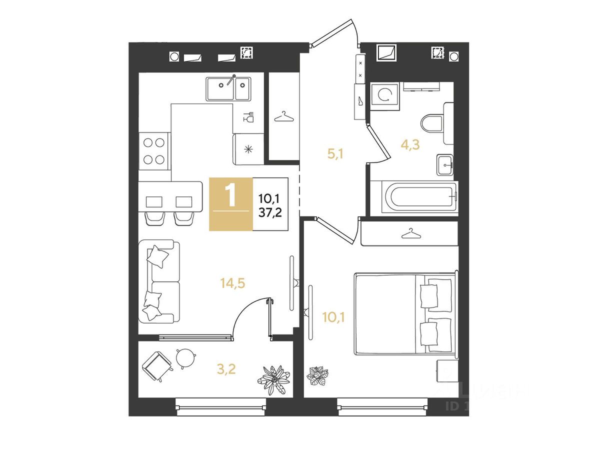 Срок сдачи: 3 кв. 2028, общей площадью 37.2 кв.м., на 2 этаже.