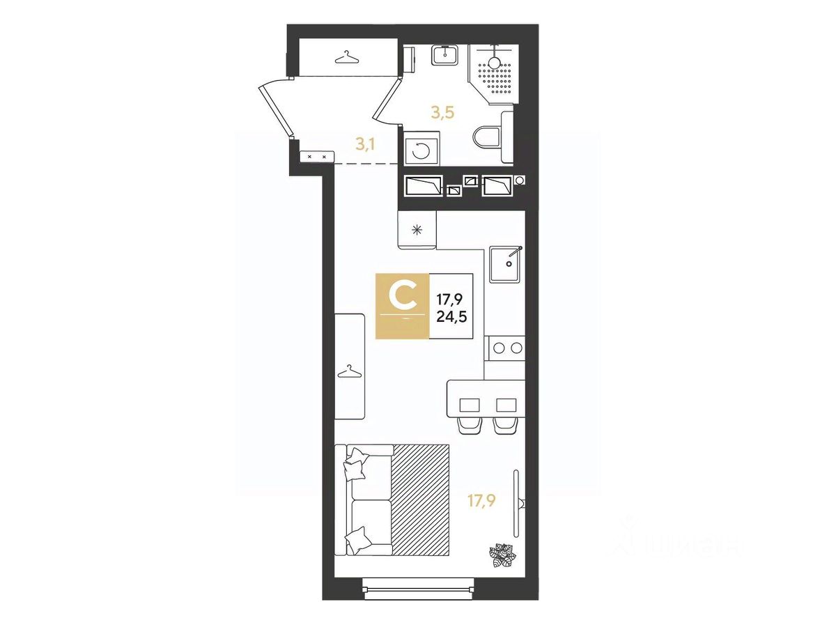 Срок сдачи: 3 кв. 2028, общей площадью 24.5 кв.м., на 3 этаже.
