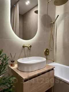 В ванной качественный керамогранит с запилами под 45 градусов , золотая встроенная сантехника, электрический полотенцесушитель скрытого монтажа , скрытый профиль для Шторки в ванную в потолке. Хорошая инсталляция Vitrа. Коллекторная разводка труб, есть возможность дополнительно установить бойлер ( все для этого проведено). В ванную заказали шкаф вместительный и через него же можно попасть в ревизионную зону труб.