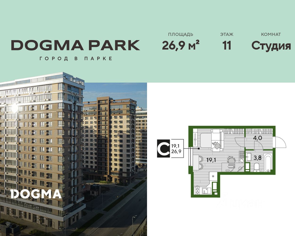 В продаже квартира-студия от застройщика! Мкр. "DOGMA PARK" г. Краснодар, Литер 24 Срок сдачи: 4 кв. 2027, общей площадью 26.9 кв.м., на 11 этаже.